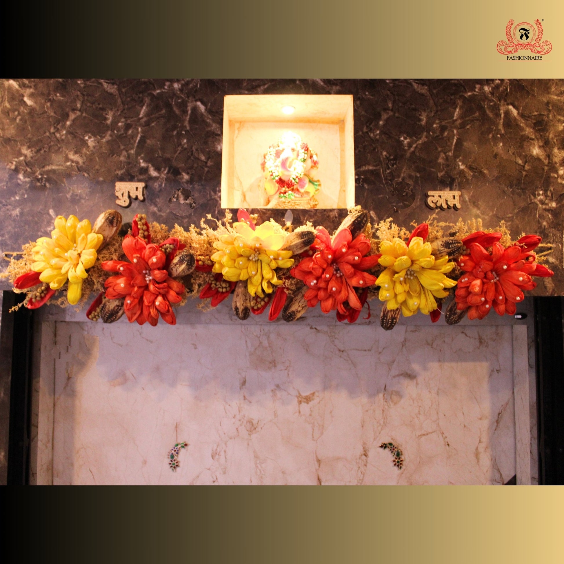 Enhancing the festive spirit, this sustainable, eco-friendly toran uplifts the mood of the onlookers and creates a joyful and celebratory atmosphere. Hang a new colorful toran on your front steps and welcome good luck and prosperity. Keeping nature in mind, this toran has been designed using corn peel flowers and natural dried botanicals.