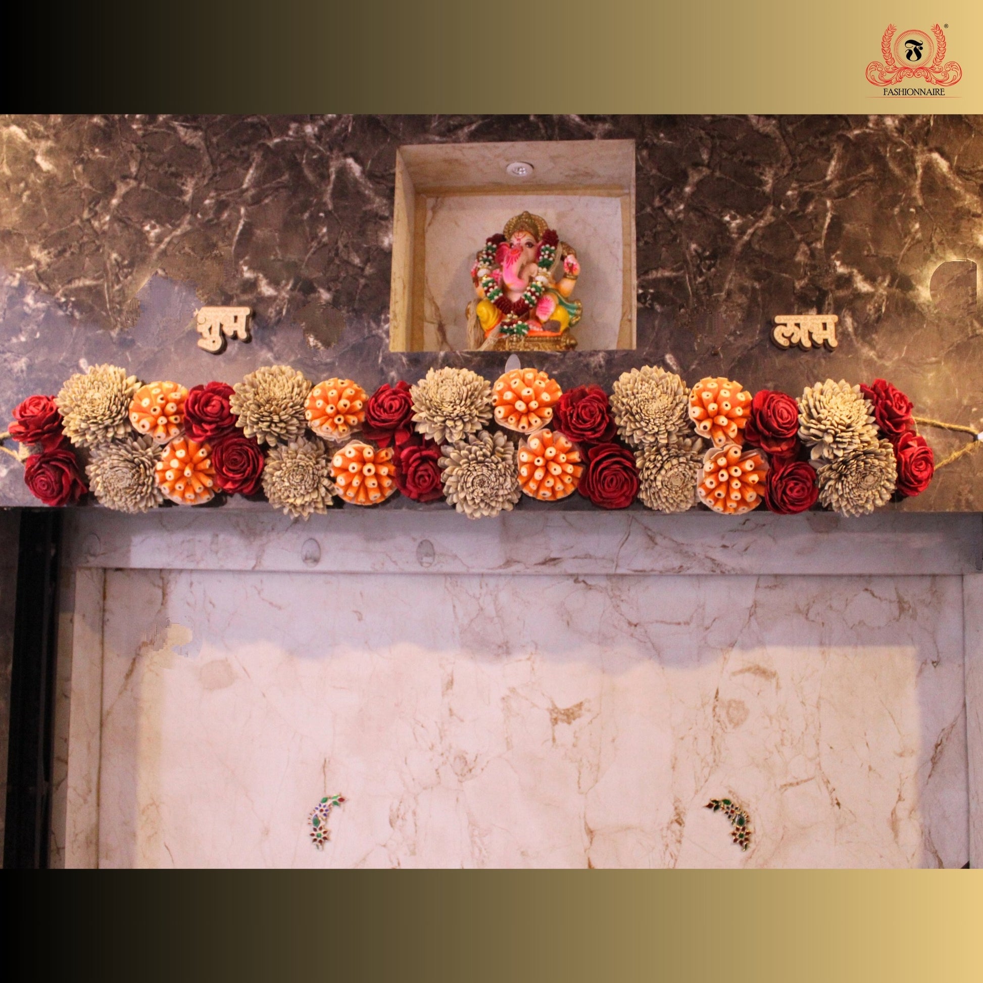 Torans by Fashionnaire, festoon the main entrance of your beautiful home and welcomes more of abundance and positivity. Adorn your doors with this sustainable, eco-friendly and affordable frieze hangings. An age old token of a protective shield for our homes in many Indian cultures, putting up torans as door hangings fosters a sense of cultural connection. Handcrafted with an assorted range of sola wood flowers and dried botanicals, this toran will add a glitz to your festivities, especially Diwali and house-warmings.