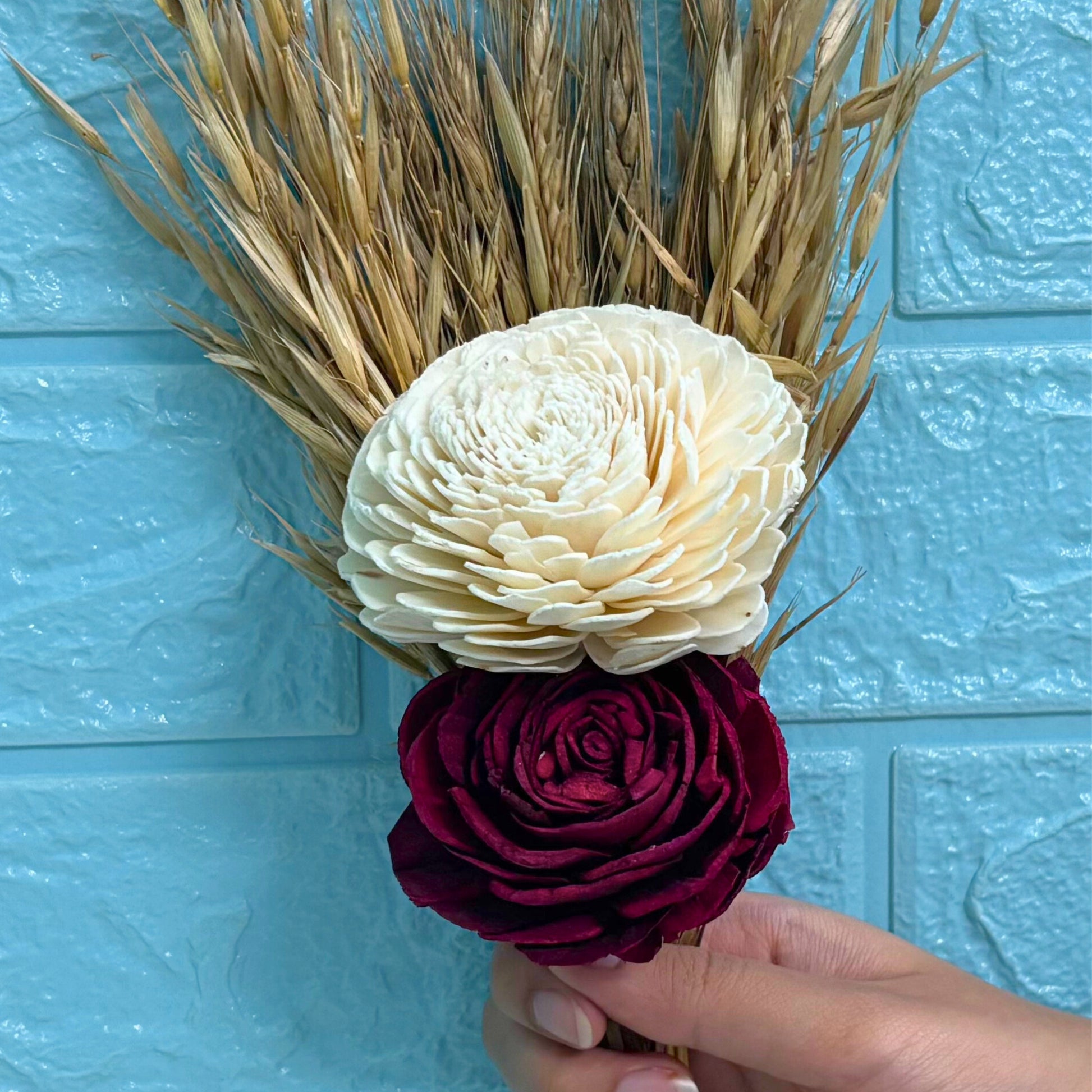 Looking for a pretty and eco friendly alternative to fresh flower bouquets? Our Dried bouquets is the perfect solution for your needs. This one-of-a-kind bouquet is meticulously crafted using sola wood flowers and a curated selection of naturally dried grasses, making it an everlasting rustic charm. Perfect for home décor, weddings, gifts, or special events, this long-lasting arrangement offers a sustainable and stylish alternative to fresh blooms.